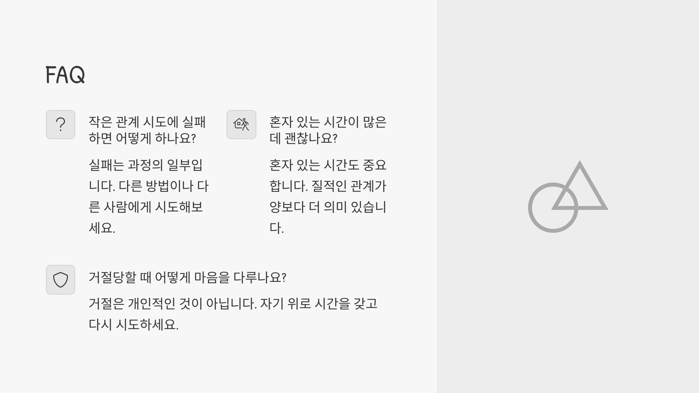 누군가와 대화하는 것이 두렵고, 바깥 세상이 낯설게 느껴질 때가 있어요. 그런 순간이 반복되다 보면 어느새 혼자 있는 것이 익숙해지고, 외로움이라는 감정마저 무뎌질 때가 있어요. 하지만 우리는 원래부터 혼자 살아가는 존재가 아니에요. 누구나 연결되고 싶고, 따뜻한 말 한마디에 위로받고 싶어하죠.