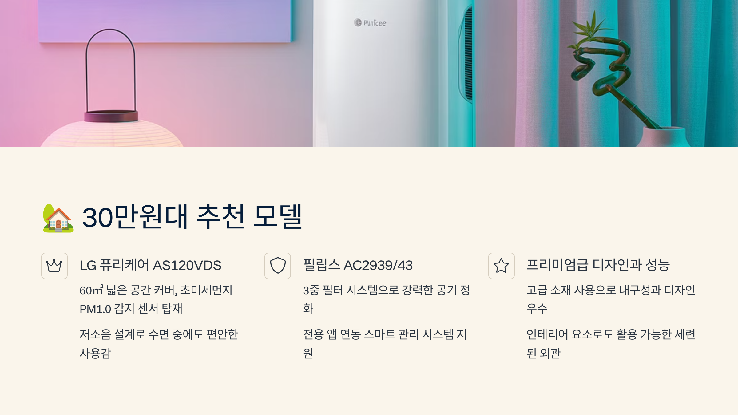 30만원대 모델을 고를 때는 '필터 복합 기능', '센서 정밀도', '소음 수준'까지 모두 고려하는 게 좋아요! 🎯